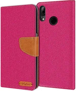Handyhülle Stoff für Huawei P20 Lite Textil Wallet Case, Stoff-Design mit Magnetverschluss & Kartenfächern, kompatibel mit Huawei P20 Lite (5,8 Zoll), Pink