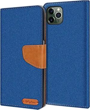Handyhülle Stoff für iPhone 11 Pro Max Textil Wallet Case, Stoff-Design mit Magnetverschluss & Kartenfächern, kompatibel mit iPhone 11 Pro Max (6,5 Zoll), Blau