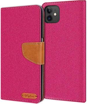 Handyhülle Stoff für iPhone 11 Textil Wallet Case, Stoff-Design mit Magnetverschluss & Kartenfächern, kompatibel mit iPhone 11 (6,1 Zoll), Pink