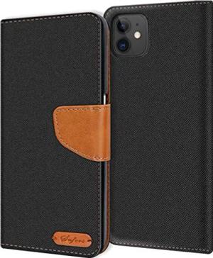 Handyhülle Stoff für iPhone 11 Textil Wallet Case, Stoff-Design mit Magnetverschluss & Kartenfächern, kompatibel mit iPhone 11 (6,1 Zoll), Schwarz
