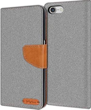 Handyhülle Stoff für iPhone 7/8 / SE 2 / SE 3 Textil Wallet Case, Stoff-Design mit Magnetverschluss & Kartenfächern, kompatibel mit iPhone 7/8 / SE 2 / SE 3 (4,7 Zoll), Grau