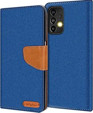 Handyhülle Stoff für Samsung Galaxy A23 5G Textil Wallet Case, Stoff-Design mit Magnetverschluss & Kartenfächern, kompatibel mit Samsung Galaxy A23 5G (6,6 Zoll), Blau