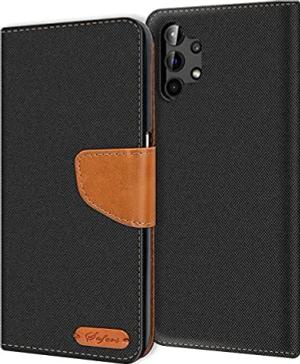 Handyhülle Stoff für Samsung Galaxy A32 5G Textil Wallet Case, Stoff-Design mit Magnetverschluss & Kartenfächern, kompatibel mit Samsung Galaxy A32 5G (6,5 Zoll), Schwarz