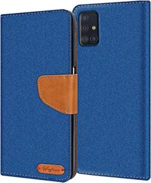 Handyhülle Stoff für Samsung Galaxy A51 Textil Wallet Case, Stoff-Design mit Magnetverschluss & Kartenfächern, kompatibel mit Samsung Galaxy A51 (6,5 Zoll), Blau
