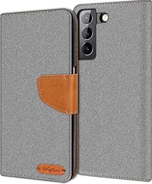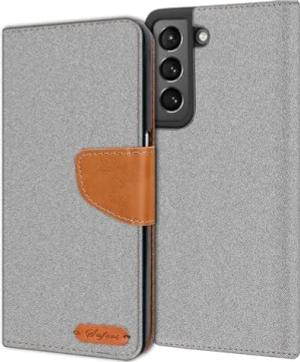 Textil Klapphülle für Samsung Galaxy S21, Hochwertige Schutzhülle mit 3 Kartenfächern, 1 Bargeldfach und Magnetverschluss, Grau