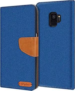 Handyhülle Stoff für Samsung Galaxy S9 Textil Wallet Case, Stoff-Design mit Magnetverschluss & Kartenfächern, kompatibel mit Samsung Galaxy S9 (5,8 Zoll), Blau