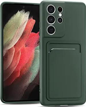 Kartenhülle Handy für Samsung Galaxy S21 Ultra Card Case, Schutzhülle mit Kartenfach & TPU Stoßschutz und Microfaserfutter, kompatibel mit Samsung Galaxy S21 Ultra (6,8 Zoll), Grün