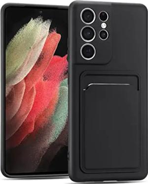 Kartenhülle Handy für Samsung Galaxy S21 Ultra Card Case, Schutzhülle mit Kartenfach & TPU Stoßschutz und Microfaserfutter, kompatibel mit Samsung Galaxy S21 Ultra (6,8 Zoll), Schwarz