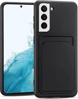 Kartenhülle Handy für Samsung Galaxy S22 Card Case, Schutzhülle mit Kartenfach & TPU Stoßschutz und Microfaserfutter, kompatibel mit Samsung Galaxy S22 (6,1 Zoll), Schwarz
