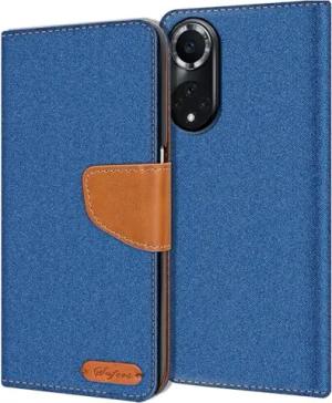 Textil Klapphülle für Huawei Nova 9 / Honor 50, Hochwertige Schutzhülle mit 3 Kartenfächern, 1 Bargeldfach und Magnetverschluss, Blau