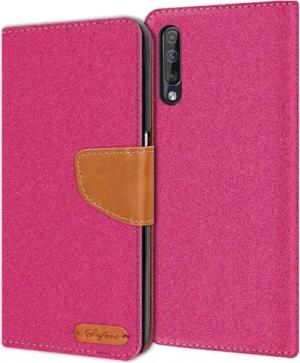 Textil Klapphülle für Samsung Galaxy A50 / Samsung Galaxy A30s, Hochwertige Schutzhülle mit 3 Kartenfächern, 1 Bargeldfach und Magnetverschluss, Pink