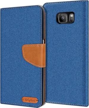 Textil Klapphülle für Samsung Galaxy S7, Hochwertige Schutzhülle mit 3 Kartenfächern, 1 Bargeldfach und Magnetverschluss, Blau
