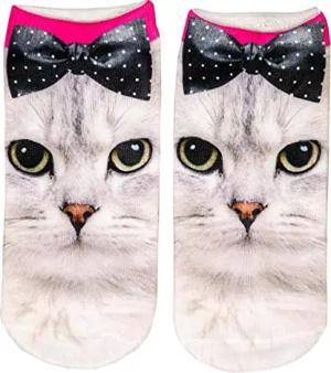 1 Paar Sneaker Socken – Katzen Design – Einheits-Größe 33-40 (D3 Katze mit Schleife)