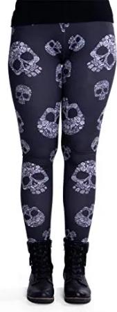 Bedruckte Bunte Halloween Leggins (Einheitsgröße) - Design Totenschädel