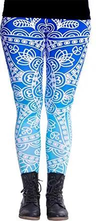 Bunte Bedruckte Mandala-Leggings (Einheitsgröße) - Design Mandala Ombré-Blue