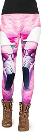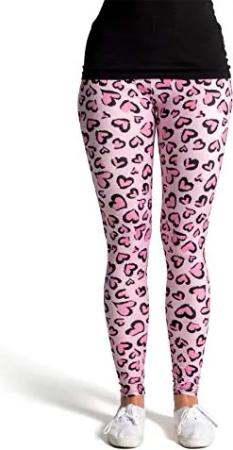 Bedruckte Bunte Leggins (Einheitsgröße) Verschiedene Leggings Designs, Flamingo Herzen, Einheitsgröße