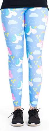 Bedruckte Bunte Leggins (Einheitsgröße) Verschiedene Leggings Designs, Einhörner und Wolken, Einheitsgröße