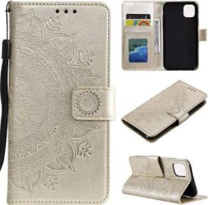 Handy Case kompatibel mit iPhone 11 [6,1 Zoll] - Handy Cover mit Kartenfach Phonecase - Smartphone Hülle klappbar Motiv Mandala Gold