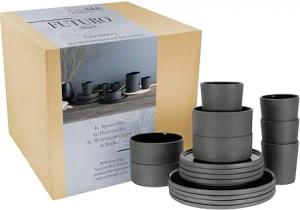 19787, Serie SISU, 24-teiliges Geschirrset, Teller Set aus Steinzeug, spülmaschinen- und mikrowellengeeignet, Qualitätsproduktion