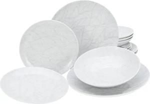 25869, Serie Blätter - Serie Home, 12-teiliges Geschirrset für 4 Personen, Teller Set aus Porzellan, spülmaschinen- und mikrowellengeeignet, Made in Europe