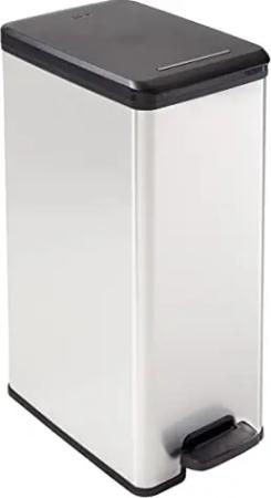 02340-582-00 Deco Abfalleimer Slim 40 L, Plastik, schwarz/Silber metallic, 39,29 x 25 x 60,7 cm