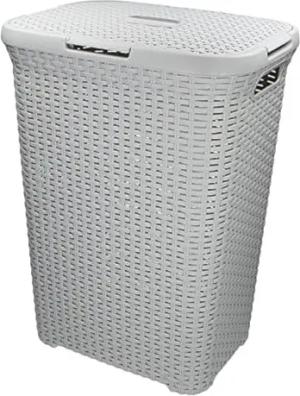 Wäschekorb Softex 56 l – elegantes Design – leicht, stapelbar und praktisch – 70% recycelt – geräumige Größe 59 x 43 x 34 cm – Elfenbeinfarben