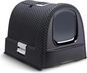 petlife Katzentoilette mit Deckel, Katzenklo inklusive Schaufel, moderne Rattangeflecht-Optik, anthrazit, 51,5 x 38,5 x 40 cm