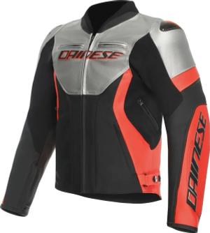 Racing 5 Motorrad Lederjacke, schwarz-rot-silber, Größe 46 für Männer