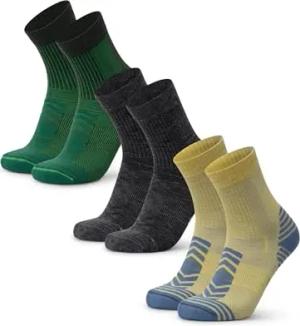 Leichte Merino Wolle Wandersocken, Sommer Wollsocken, Unisex, für Herren & Damen, 3 & 5 Paar, 1 Grün, 1 Dunkelgrau, 1 Gelb, 43-47