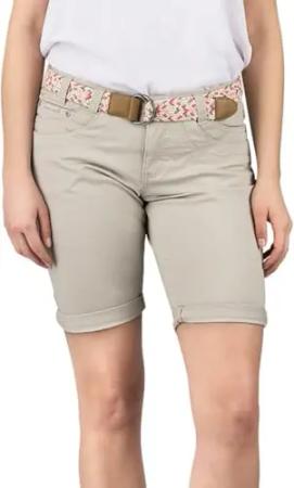 Bermuda Shorts Damen mit Gürtel Regular Fit DFPia Kurze Hose Chino Short Sommer Stretch Einfarbig, Größe:L, Farben:Light Sand