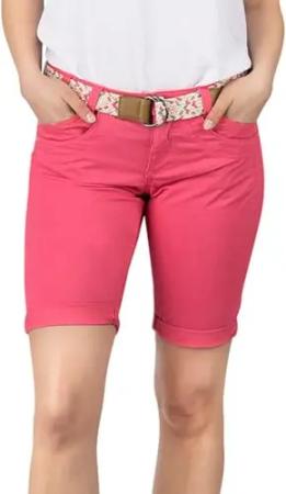 Bermuda Shorts Damen mit Gürtel Regular Fit DFPia Kurze Hose Chino Short Sommer Stretch Einfarbig, Größe:XL, Farben:Fruit Dove Pink