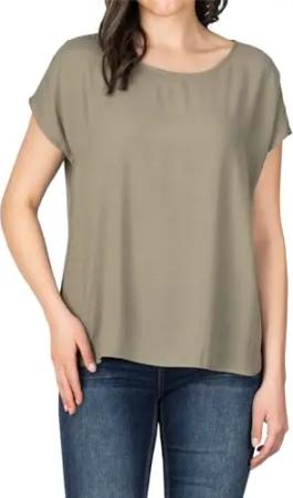 Bluse Damen Sommer Blusenshirt DFJule Regular Fit Rundhals Top Kurzarm Oberteil, Größe:S, Farben:Washed Olive