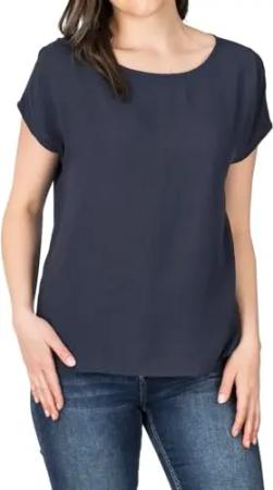 Bluse Damen Sommer Blusenshirt DFJule Regular Fit Rundhals Top Kurzarm Oberteil, Größe:XL, Farben:Navy