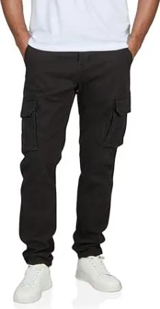 Cargohose Herren lang mit Gürtel DFLuke Regular Fit Cargo Hose Taschen Stretch, Größe:30, Farben:Black