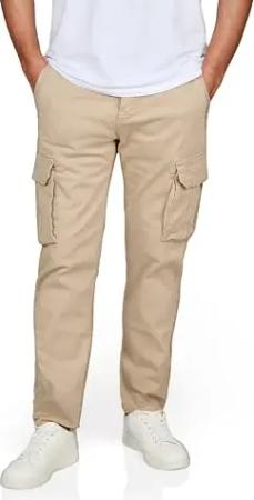 Cargohose Herren lang mit Gürtel DFLuke Regular Fit Cargo Hose Taschen Stretch, Größe:32, Farben:Beige