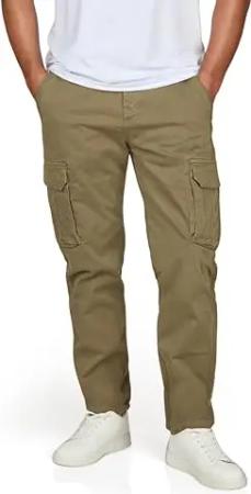 Cargohose Herren lang mit Gürtel DFLuke Regular Fit Cargo Hose Taschen Stretch, Größe:40, Farben:Ivy Olive