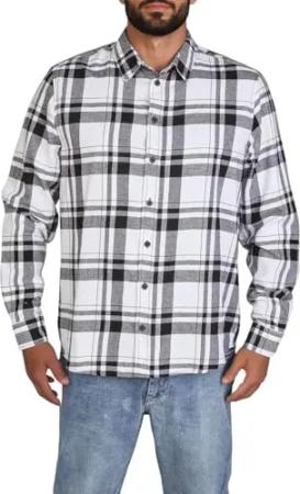 Flanellhemd Herren Langarm Kariert Regular Fit DFDean Hemd Holzfällerhemd Karohemd 100% Baumwolle, Größe:M, Farben:Black-White