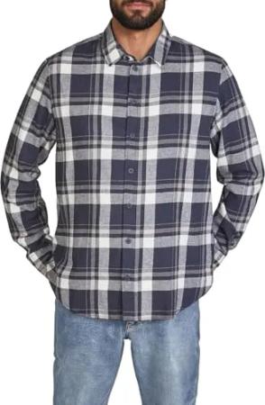 Flanellhemd Herren Langarm Kariert Regular Fit DFDean Hemd Holzfällerhemd Karohemd 100% Baumwolle, Größe:XL, Farben:Inkwell Blue-Taupe-Offwhite