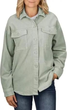 Hemd Damen Oversized Langarm DFSophia Cordhemd Hemdjacke Hemdbluse Freizeithemd Taschen Knöpfe Einfarbig Grün L, Größe:L, Farben:Jadeite Green