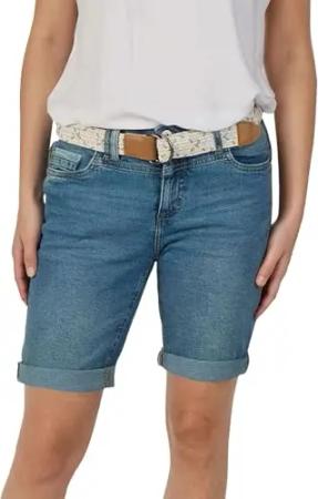 Jeans Shorts Damen mit Gürtel Regular Fit DFLena Kurze Hose Short Sommer Denim Stretch Basic Einfarbig, Größe:M, Farben:Middle Blue Denim (M267)