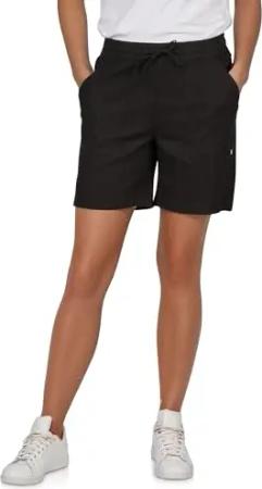 Kurze Hose Damen Regular Fit DFAlessia Leinen Shorts Sommer Taschen Elastische Taille Kordelzug Einfarbig, Größe:XL, Farben:Black