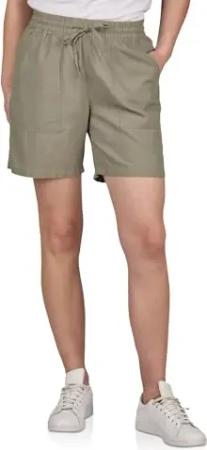 Kurze Hose Damen Regular Fit DFAlessia Leinen Shorts Sommer Taschen Elastische Taille Kordelzug Einfarbig, Größe:XL, Farben:Washed Olive