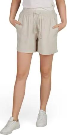 Kurze Hose Damen Sommer leichte Hose mit Gummizug Regular Fit DFLia Weite Bermuda Shorts 100% Viskose, Größe:M, Farben:Light Sand