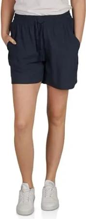Kurze Hose Damen Sommer leichte Hose mit Gummizug Regular Fit DFLia Weite Bermuda Shorts 100% Viskose, Größe:XL, Farben:Navy