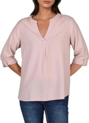 Leinenbluse Damen Sommer leicht Regular Fit DFSara Leinen Bluse 3/4 Arm V-Ausschnitt Blusenshirt Oberteile Einfarbig Rosa M, Größe:M, Farben:Light Greyish Rose