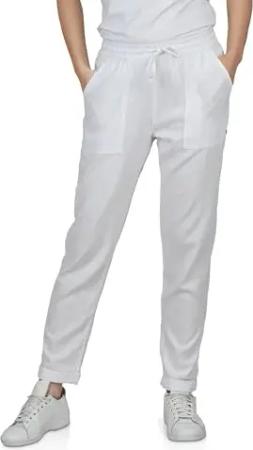 Leinenhose Damen Sommer lang Sommerhose leicht Strandhose Regular Fit DFLinda Freizeithose Gummizug Einfarbig Weiß M, Größe:M, Farben:White