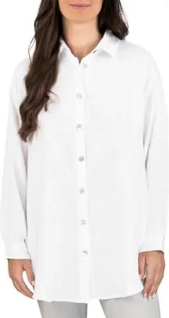 Musseline Bluse Damen Oversized DFMathilda Hemdbluse Sommer Langarm Knopfleiste Einfarbig 100% Baumwolle Weiß S-M, Größe:S/M, Farben:White (62000)