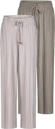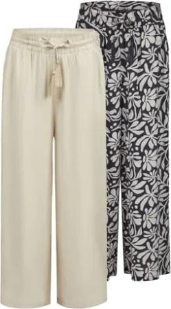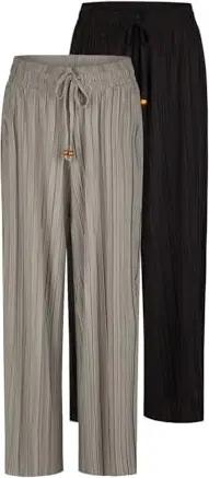 Palazzo Hose Damen Sommer 7/8 Loose Fit DFKate 2er Pack Weites Bein Sommerhose leicht Stoffhose Knöchellang Elastische Taille Einfarbig Muster Viskose, Größe:L, Farben:Farbmix 11