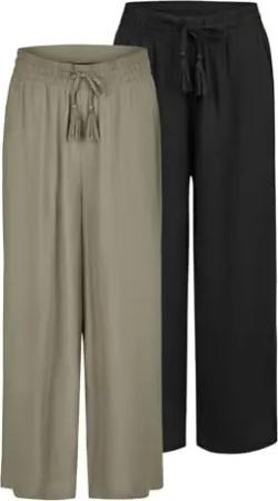 Palazzo Hose Damen Sommer 7/8 Culotte DFBrenda 2er Pack Set Hohe Taille Weites Bein Sommerhose Stoffhose Knöchellang Elastische Taille Taschen Einfarbig, Größe:M, Farbe:Pack 1