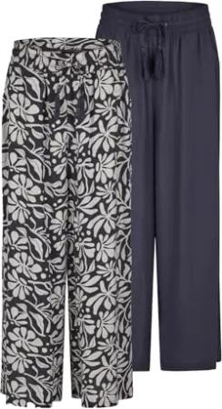 Palazzo Hose Damen Sommer 7/8 Loose Fit DFKate 2er Pack Weites Bein Sommerhose leicht Stoffhose Knöchellang Elastische Taille Einfarbig Muster Viskose, Größe:XXL, Farben:Farbmix 7